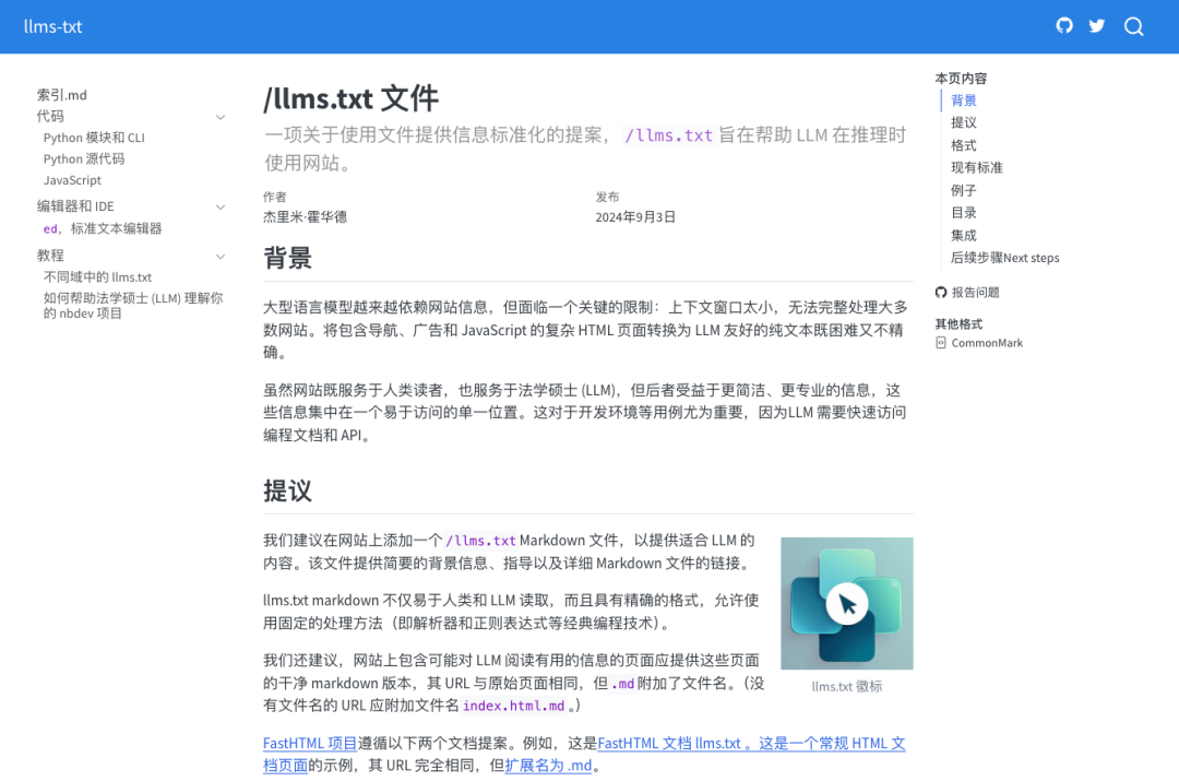 llms.txt是一种新的网站标准,建议在网站根目录放置一个名为llms.txt的 Markdown 文件。它就像给 AI 准备的一份网站“简介”,让 AI 能快速抓住网站重点